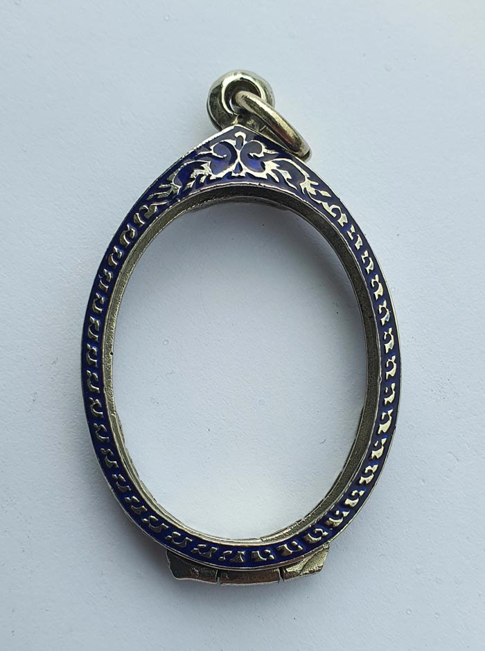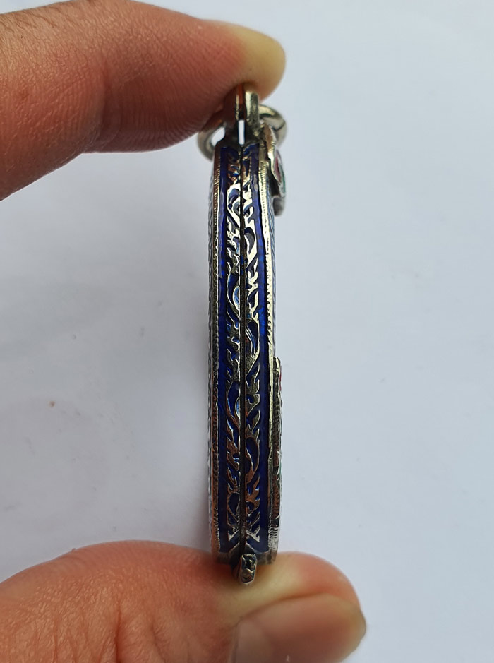**วัดใจ** ตลับเงินรูปไข่ยกซุ้มลงยาอย่างดี สภาพดีเหมือนใหม่ ใส่เหรียญขนาด 2.7x3.5 ซม. #A2 |