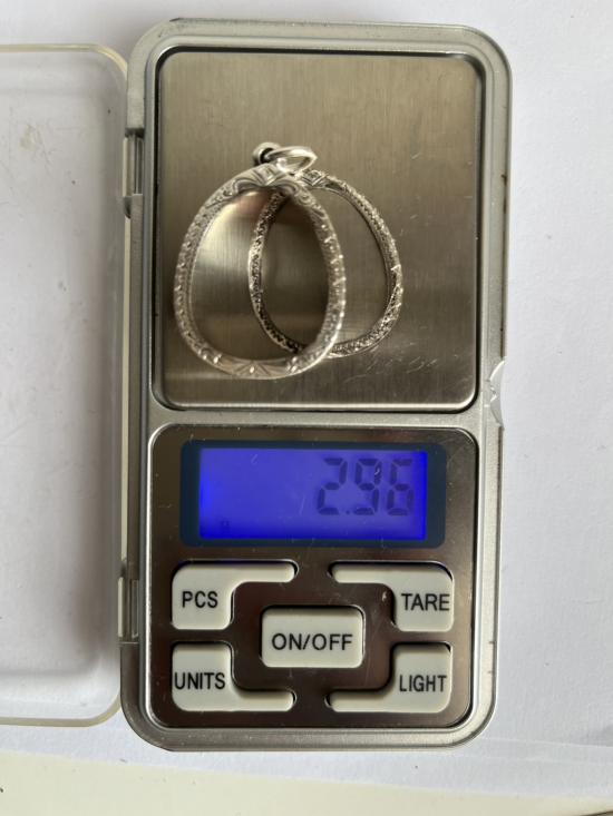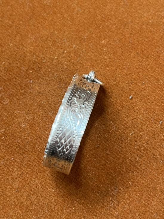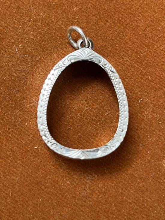 กรอบเงินแท้ มือสอง ใส่พระปิดตาดวงเล็กหลวงปู่โต๊ะ หรือขนาดใกล้เคียง กว้าง 2.0 สูง 2.5 หนา 0.7 cm |