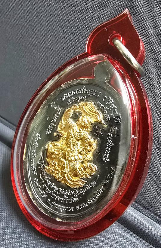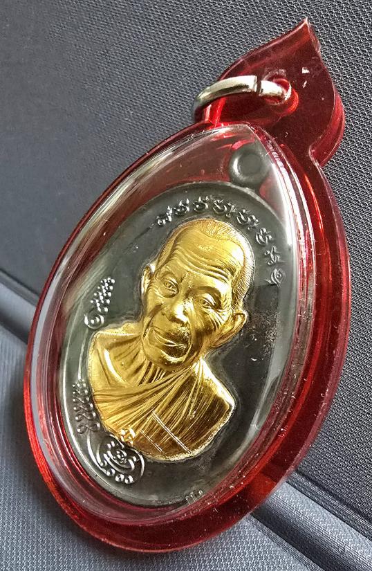 เนื้อเหล็กน้ำพี้ ปิดทองหน้า-หลัง(องค์หลวงปู่-หนุมาน) เลี่ยมกันน้ำขอบสีสวยๆ