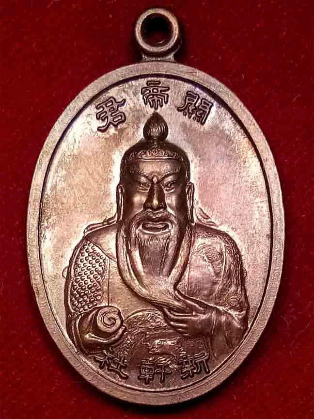 เหรียญ เทพเจ้ากวนอู ศาลเจ้าพ่อกวนอูซิงเฮงเซี่ย รุ่น 1 ซอยเจริญกรุง 91 ปี 2540 |