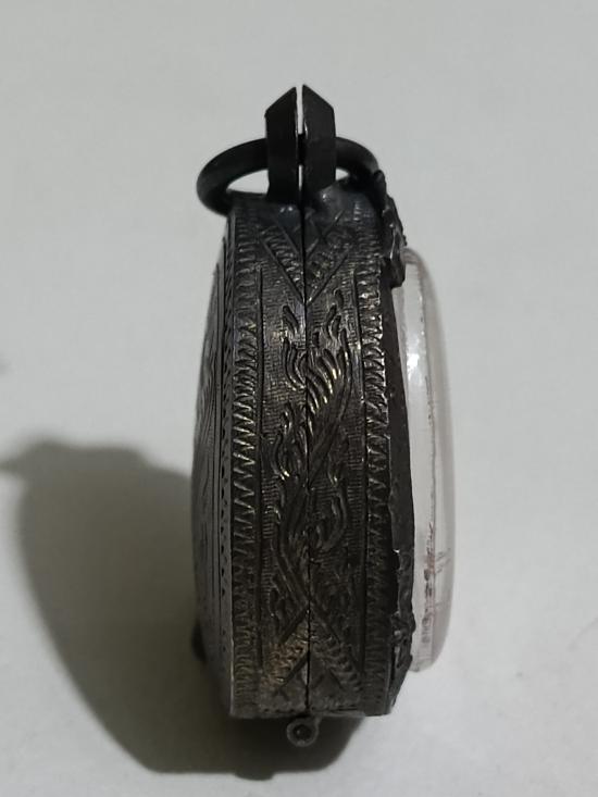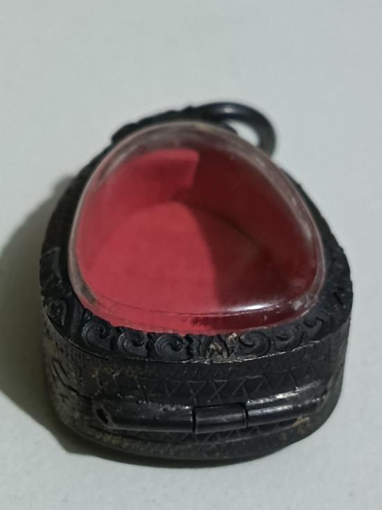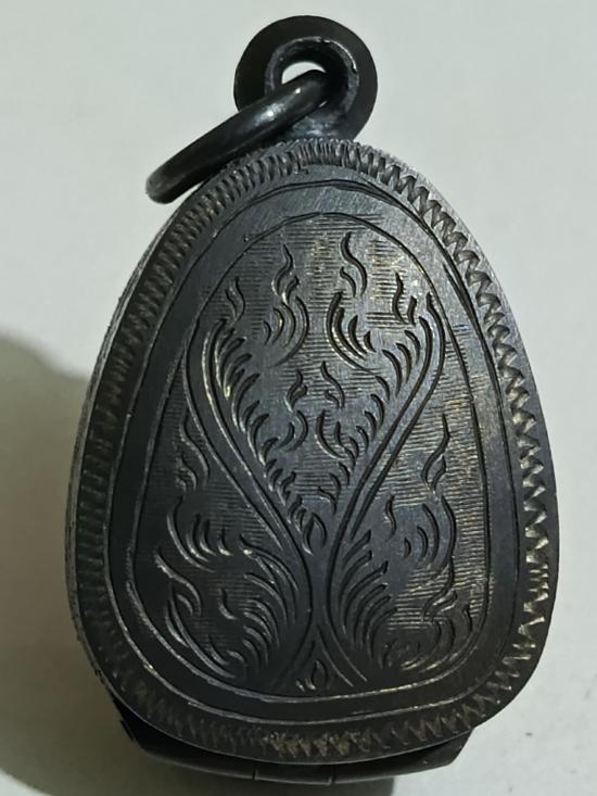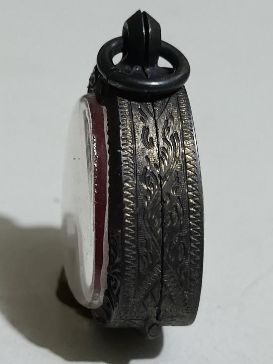 ตลับเงินเก่าแท้ ปิดหลังแกะลายกนกหัวสิงห์ใหญ่ ใส่พระปิดตาหลวงพ่อทับวัดทอง หนาหนัก 6.29 กรัม งานแกะมือ |