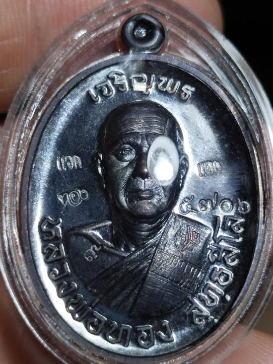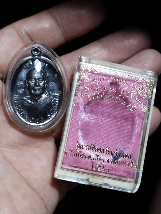 เหรียญเจริญพรบน 63 หลวงพ่อทอง วัดบ้านไร่ จ.นครราชสีมา เนื้อทองแดงรมดำ เหรียญแจกตอก 9 หัวไหล่ |