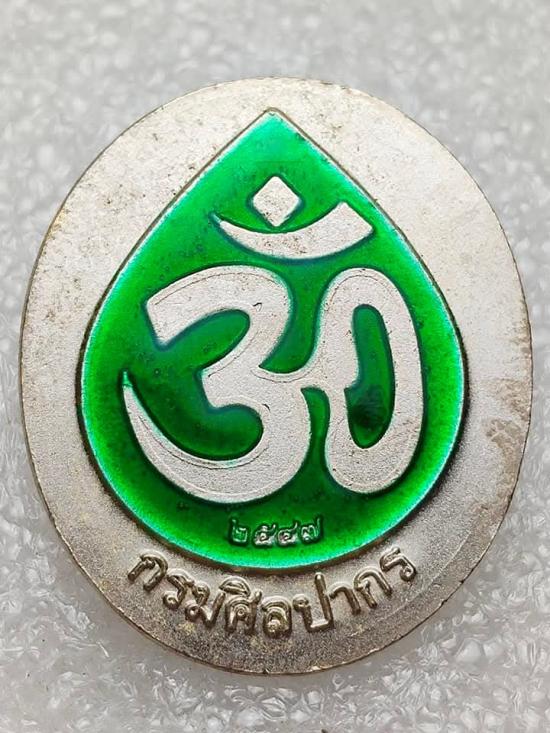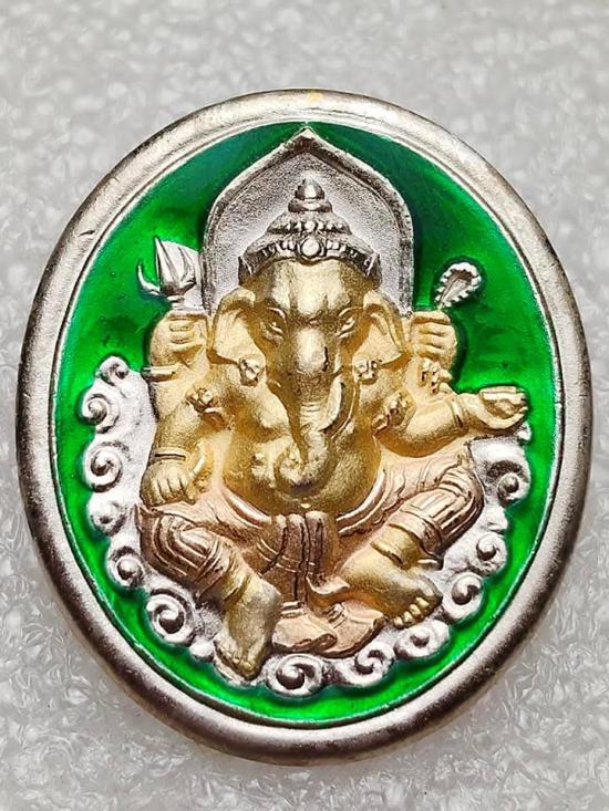 เคาะเดียวแดง....เหรียญพระพิฆเนศวร เนื้อ 3 กษัตริย์ลงยาสีเขียว กรมศิลปากร ปี 2547 |