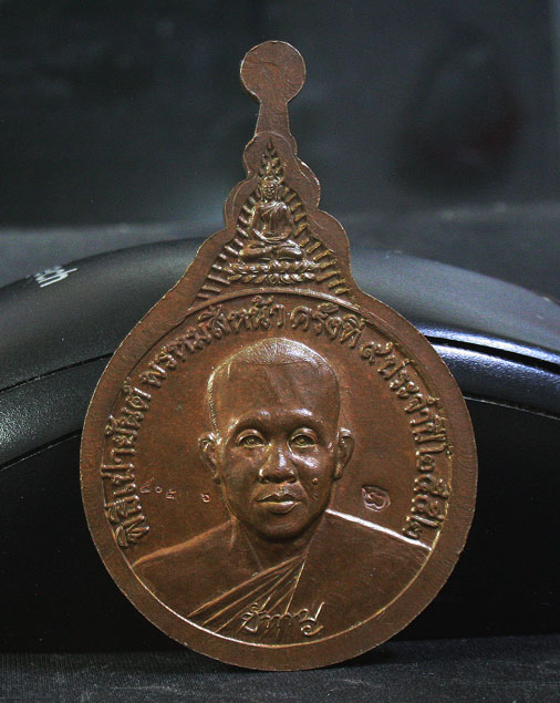 ด้านหลัง เป็นรูปหลวงพ่อครึ่งองค์มีลายเซ็นคำว่า "ชำนาญ" เป็นสื่อถึงหลวงพ่อกับลูกศิษย์โดยตรง ด้านบนเป็นพระพุทธรูป ซึ่งแฝงคำสอนของหลวงพ่อว่า "ทำอะไรก็อย่าทิ้งพระรัตนตรัย นะ" เหรียญนี้ดูโดยรวมจะเห็นเป็นทรงคล้ายหยดน้ำ ให้ความหมายว่า ตราบใดที่ฝนยังหล่นบนพื้นดินอยู่ตราบนั้นเราก็จะได้รับความชุ่มชื่นและร่มเย็นเป็นสุขตลอดไป