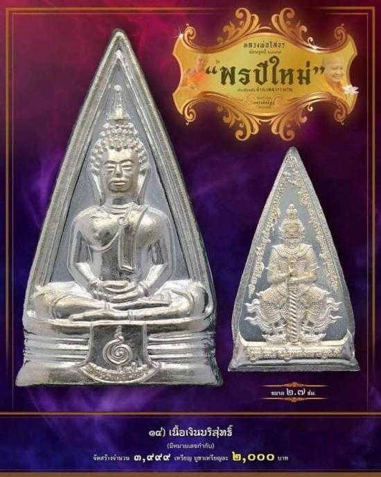 ( วัดใจ 109 บาท รับพระ 1 เหรียญ ) พระพุุทธพิมพ์สามเหลี่ยมพระพุทธโสธร ย้อนยุคปี ๙๗ หลังประทับท้าวเวสสุวรรณ รุ่น พรปีใหม่ รกที่ 14 เนื้อเงิน บริสุทธิ์ ราคาจอง 2,000 บาท ซีลเดิมลุ้นเลขสวย