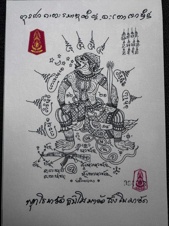 เคาะเดียว 250 ผ้ายันต์พหูรมานสีขาว no.004322แม่ทัพภาคที่2.ทำแจกทหารชายแดนรอบที่2.หลวงปู่เมตตาอฐิฐานจิตเสกเดี่ยวอย่างเข้มขลัง(ผ้าแคนวาสสกรีนตรากองทัพภาคที่2)รันเลขนัมเบอร์พร้อมประทับหมึกเเดงตรากองทัพ |