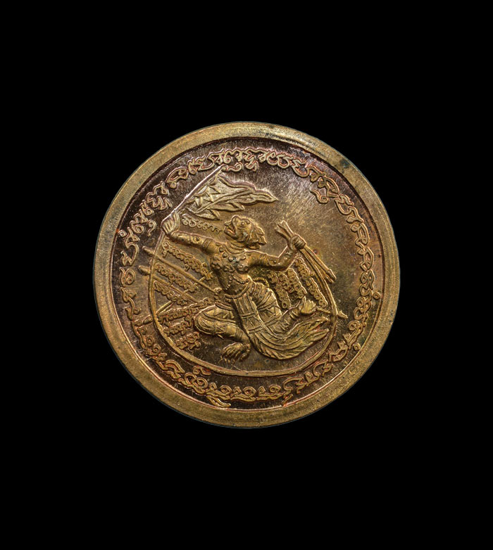 เหรียญโชคดี หลังหนุมานไหว้ครู หลวงปู่เขียว วัดห้วยเงาะปัตตานี ปี ๒๕๕๙