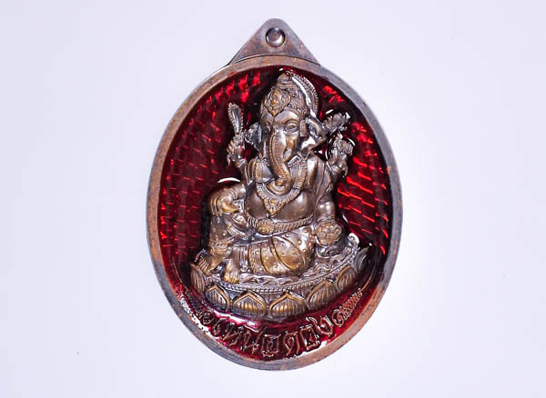 *เนื้อนวะโลหะคุ้ยพื้นลงยา ของดี ปู่ศิลา พระพิฆเนศเสวยสุข รุ่นเหนือดวง หลวงปู่ศิลา สิริจันโท เศก มีเกจิเศกอีก3วาระ เคาะเดียวแดง* |