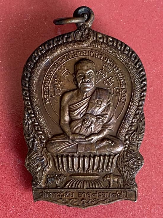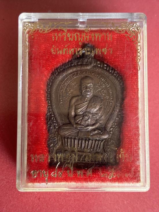 เหรียญนั่งพาน ยันต์เกราะเพชร หลวงพ่อมี วัดมารวิชัย เนื้อทองแดงปี2537 สภาพสวยพร้อมกล่อง