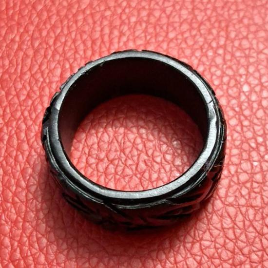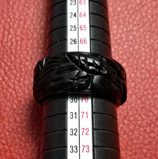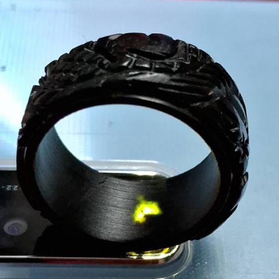 แหวนหยกดำแกะลายมังกร หยกพม่าแท้ 100 % (แสงส่องผ่าน) เส้นผ่าศูนย์กลาง 2.3 ซม. หนา 1.2 ซม. หายากวงใหญ่ๆ ไม่ค่อยได้มาบ่อย ราคาค่อนข้างสูง (กท.05)