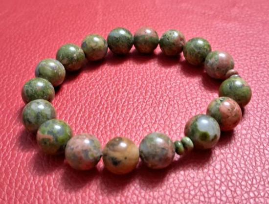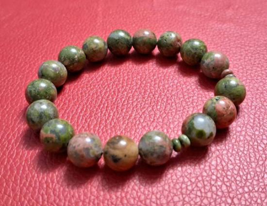 กำไลข้อมือประคำหินยูนาไคต์ (Unakite) หรือ หินถูกหวย ขนาด 10 มิล ร้อยด้วยเอ็นยืด ขนาดฟรีไซด์ (กท.88) |