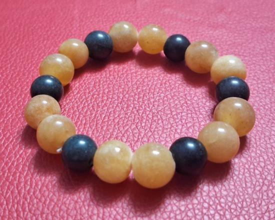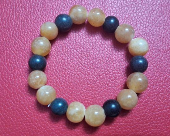 ประคำข้อมือหยกน้ำผึ้ง หยกพม่าแท้ ขนาด 10-11 มิล + หยกหยกเนไฟร์ต (Nephrite) หรือหยกจีน สีดำ ขนาด 10 มิล ร้อยด้วยเอ็นยืด ขนาดฟรีไซด์ (กท.37)