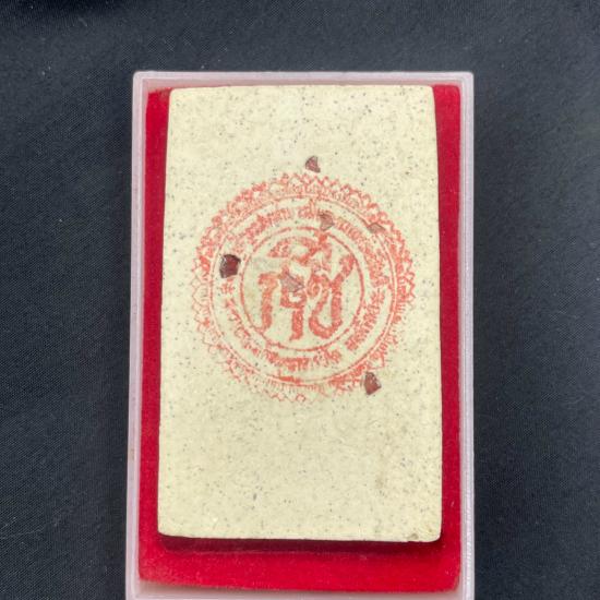 ขนาด 5.5 x3.5 ซม พระสมเด็จทรงไกเซอร์ รุ่นทูลเกล้า พิมพ์ใหญ่ วัดอรุณฯ พระสมเด็จไกเซอร์รุ่นแรก ปี 2529 มีส่วนผสมมวลสารของหลวงพ่อหลวงปู่ต่างๆอาทิเช่นหลวงปู่ภู หลวงพ่อพรหม หลวงพ่อลี ผงจากหลวงพ่อโสธร ผงเก่าจากวัดประสาทปี 2506 ดินจากสังเวชนียสถาน และวัตถุต่างๆอันเป็นมงคลที่รวบรวมกันมาจากทั่วประเทศ พิธีปลุกเสกยิ่งใหญ่ รวมเกจิคณาจารย์ระดับแนวหน้าร่วมพิธี คับคั่ง องค์นี้ ด้านหลังฝังพลอยสี ปั็มยันต์ |
