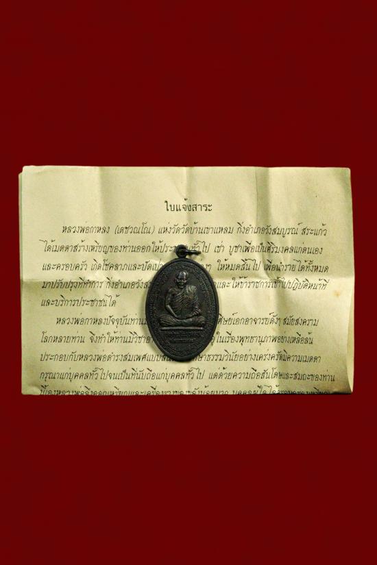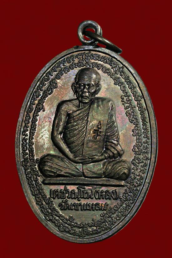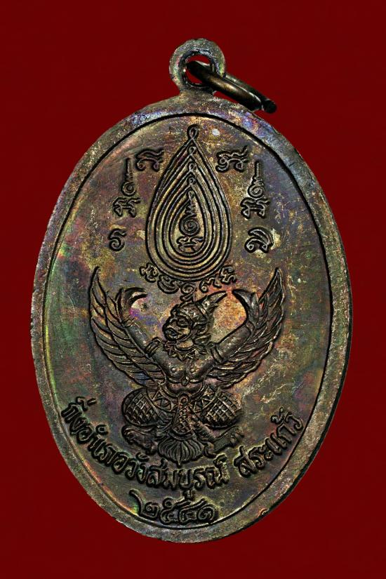 เหรียญกิ่งอำเภอวังสมบูรณ์ (รุ่นปืนแตก) เนื้อทองแดง หลวงปู่กาหลง เขี้ยวแก้ว วัดเขาแหลม สระแก้ว ปี 2541 บล็อกนิยม ตอกโค้ดมือ ด้านหลังวงเดือน |