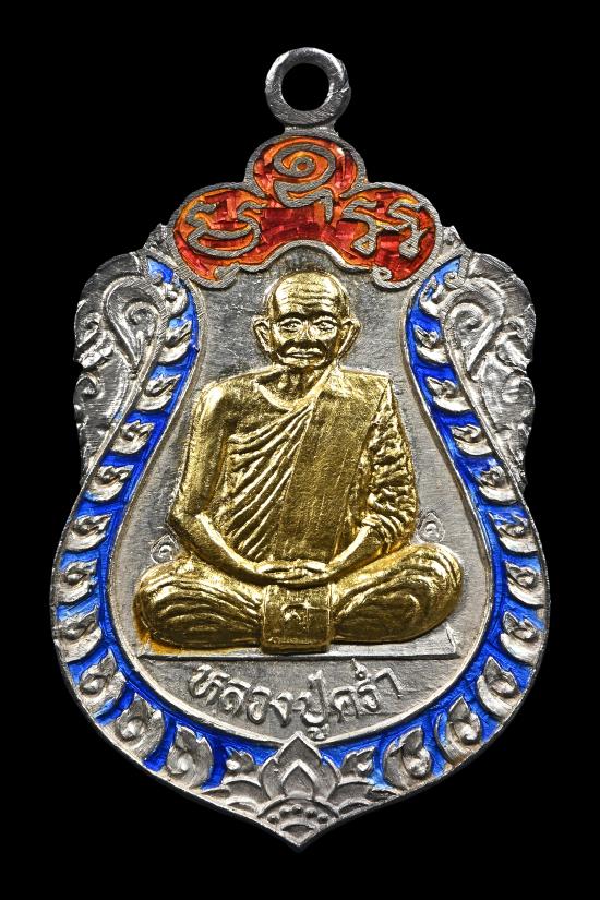 เหรียญเสมา8รอบหลวงปู่คร่ำวัดวังหว้าปี2535เนื้อเงินหน้ากากทองคำ 2โค้ต เคาะเดียวแดง |