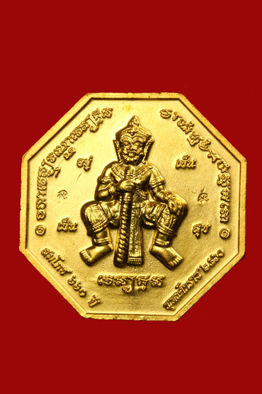 เหรียญแปดเหลี่ยม พระพุทธชินราชหลังท้าวเวสสุวรรณ รุ่น660ปี พิธีสมโภชพระพุทธชินราช เนื้อกะไหล่ทอง |