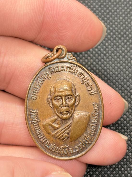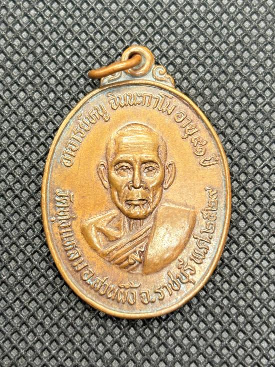 เหรียญอายุ 91 ปี หลังสิงห์ หลวงปู่หนู ฉินนะกาโม วัดทุ่งเเหลม จ.ราชบุรี ปี 2529 เนื้อทองแดง