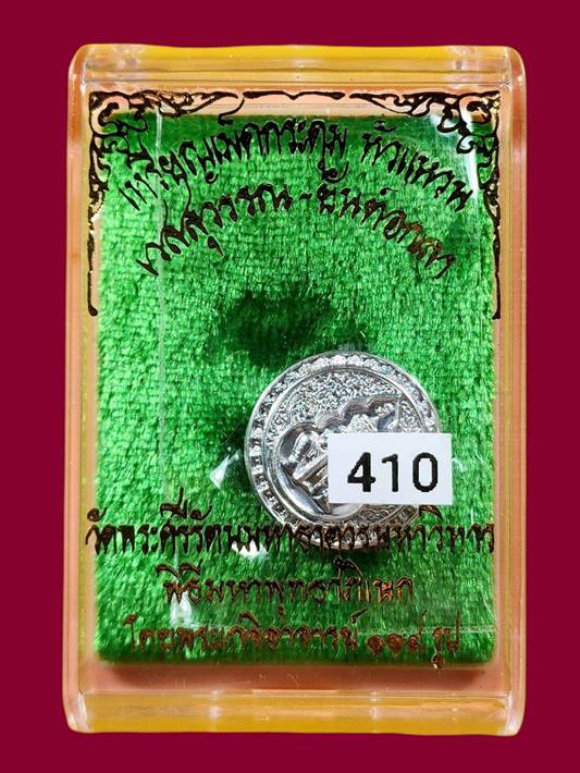 (เนื้อปีกเครื่องบิน-แจกในพิธี)เลข 410 เหรียญเม็ดกระดุม หัวแหวน เวสสุวรรณ ยันต์นะเศรษฐี หลังยันต์อกเลาพระพุทธชินราช : สาริกาคู่ |