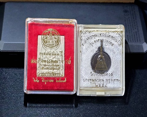 (2 องค์) พิเศษ 2 ตรายาง หายาก .. เท่าไหร่ เท่านั้น . สภาพสวย ... พระสมเด็จวัดระฆัง 122 ปี พิมพ์ใหญ่ ปี 2537 + เหรียญสมเด็จโต อมตมหามงคล + กล่องเดิม