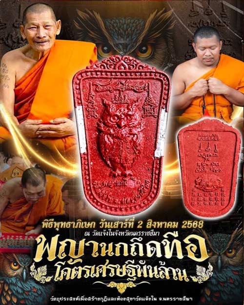 พญานกถึดทือ รุ่นแรก รุ่นโคตรเศรษฐีพันล้าน หลวงปู่มหาศิลา (หลวงปู่ศิลา) วัดแจ้งใน นครราชสีมา เนื้อว่านไก่แดงฝังตะกรุดทองแดง 1 ดอกพิเศษหน้ากากทอง (นำฤกษ์) จำนวนสร้าง 29 องค์เท่านั้น สร้างน้อยมาก สร้างตามตำรับ หลวงปู่ศุข วัดปากคลองมะขามเฒ่า สุดยอดของขลัง กินไม่รู้สิ้น เป็นเมตตามหานิยม เรียกทรัพย์ เรียกเงิน เรียกงาน ให้ลูกศิษย์ลูกหายามทุกยากเดือดร้อน