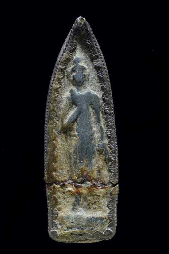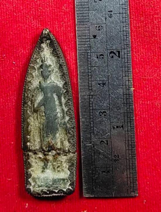 วัดใจ 130.(ทุน 400) พระลีลา เนื้อชินเขียว สภาพใช้ชำรุด เลี่ยมเงินเก่าๆ |