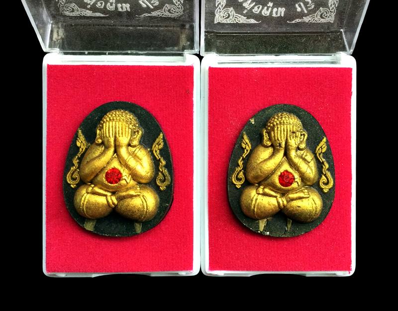 +!!เคาะเดียวllดง ตลอดสาย!!+ พระปิดตา หลวงพ่อคูณ วัดบ้านไร่ รุ่นคูณเงิน คูณทอง ปี56 (เนื้อผงใบลาน ปัดทอง ฝังตะกรุดเงินคู่ อุดพลอย หลังแมงมุมดักทรัพย์ ติดจีวร) สวยๆ พร้อมกล่องเดิมครับ