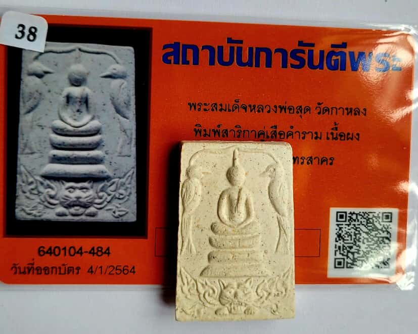 พระสมเด็จหลวงพ่อสุด วัดกาหลง พิมพ์สาริกาคู่เสือคำราม เนื้อผง ปี 2520 จ.สมุทรสาคร พร้อมบัตรรับรอง |