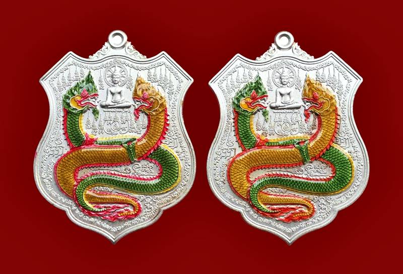 +!!เคาะเดียวllดง ตลอดสาย!!+ (รับคู่ 2 เหรียญ) เหรียญ พญาศรีสัตตนาคราช รุ่นคุ้มดวง ร่ำรวย กฐิน60 วัดไตรมิตร จ.นครพนม (เนื้อกะไหล่เงิน พิเศษลงยานาคราช) สวยๆพร้อมกล่องและใบคาถาเดิมครับ