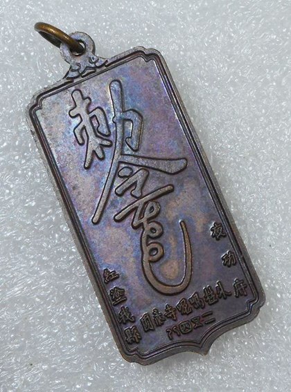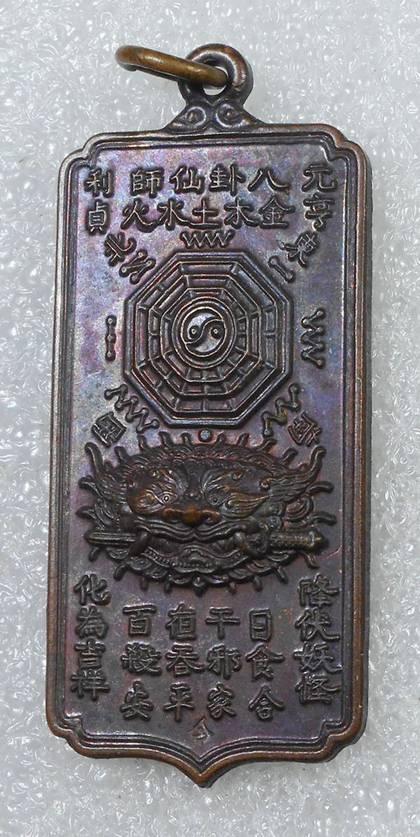 เหรียญกันชงนี้ เป็นสัญลักษณ์มงคล มีรูปเสือคาบดาบ เป็นวัตถุมงคล หรือเครื่องรางของขลัง ของชาวจีนอีกชิ้นหนึ่ง ที่เป็นที่รู้จักกันเป็นอย่างดี ชาวจีนเชื่อกันว่า มีอานุภาพในการขจัดปัดเป่าสิ่งอัปมงคลและสิ่งชั่วร้ายทั้งปวงให้หมดสิ้นไป บวกกับ ยันต์ด้านบน โป๊ยข่วย(ยันต์ 8 ทิศ) ยันต์ด้านล่าง โฮ่วก่าเกี่ยม(เสือคาบดาบ) ไว้ป้องกัน อันตรายที่จะเข้ามาหาครับ ...เหรียญนี้เพียงแต่แขวน หรือพกติดตัวไว้ มีอานุภาพมาก คนที่เกิดปีชงกับปีเกิดของตตัวเอง จะช่วยกันสิ่งที่ไม่ดี กันดวงตก กันเคราะห์ร้าย กันสิ่งชั่วร้ายที่จะเข้ามาหาเรา แล้วชงแต่เรื่องดีๆ ช่วยเสริมดวงให้ดีขึ้น มาสู่ตัวเรา ถ้าเกิดปีไม่ชง ก็บูชาได้ จะเสริมดวงให้ดียิ่งๆขึ้นไปอีกครับ ...พระอาจารย์อิฏฐ์ท่านได้ศึกษา วิชาทางไสยเวทย์มาหลายแขนงวิชา จากหลายเกจิอาจารย์ เป็นเกจิอาจารย์ในยุคนี้ที่เก่งมากองค์หนึ่ง และท่านยังเป็นผู้ลงยันต์จักรพรรดิ์ตราธิราชลงในแผ่นทองคำ ในพิธีมหาจักรพรรดิ์ที่จังหวัดพิษณุโลก เพื่อถวายให้กับในหลวง ร.9 ด้วยครับ เหรียญนี้สภาพสวยเดิมๆ |