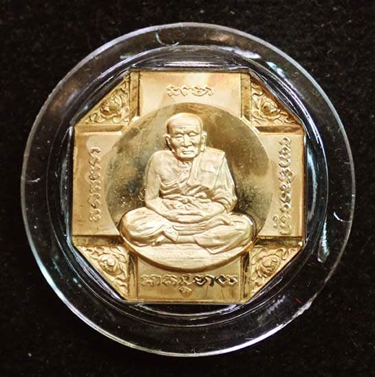 เหรียญแปดเหลี่ยม ลป.ทวด รุ่น"สมเด็จเจ้าฟ้ามหาจักรี" สมเด็จพระเทพฯ ๔๘ พรรษา จัดสร้างโดยสภากาชาดไทย ปี๒๕๔๖ เนื้อบรอนซ์นอกชุบทองขัดเงา (ขนาด 2.5 ซม.)ตอกโค๊ต"ดอกบัว"ที่ขอบเหรียญ สวยมาก ตลับกลมพลาสติกเดิมๆ |