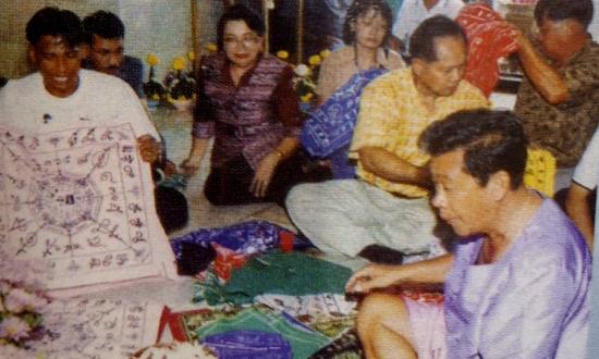 ผ้ายันต์เข้าพิธีเปิดศาลหลักเมืองนครศรีฯปี 2543 (เกาะเภตรา)และพิธีไหว้ครู |