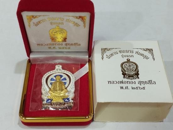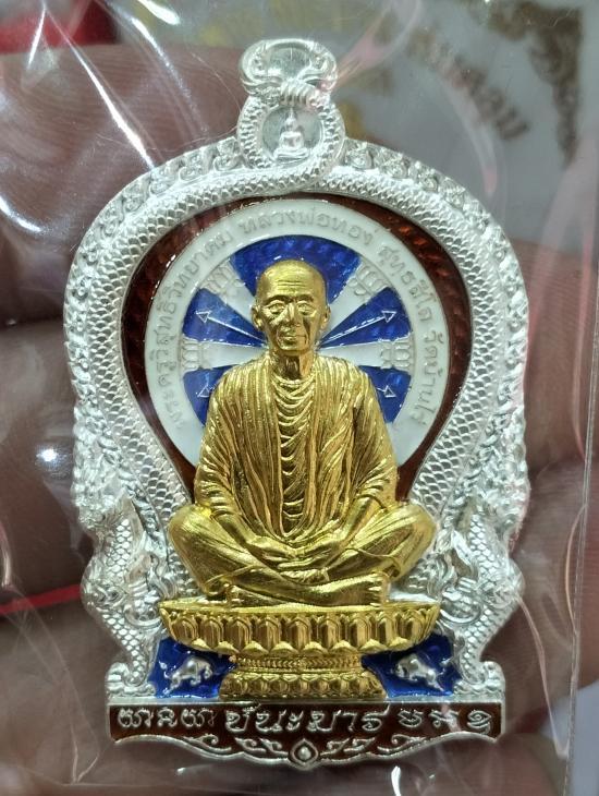 หลวงพ่อทอง วัดบ้านไร่....เหรียญนั่งพานชนะมาร(ห่มคลุม) รุ่นแรก ปี65 เนื้อเงิน ลงยา หน้าทองคำ no.10 มีกล่อง สวยงาม |