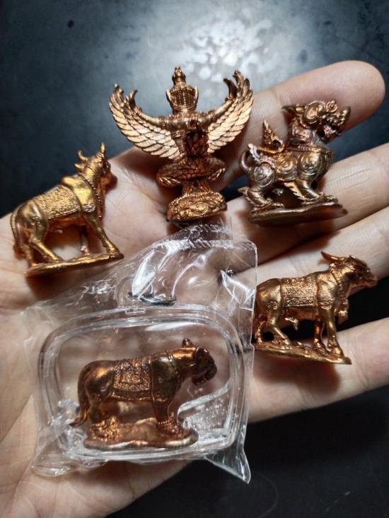 พญาครุฑสุบรรณราช ,สิงห์สีหราช,เสือพยัคฆ์ฤทธิรอน,โคอุสุภราช,กระบือทิพยการ สัตว์ทรงเทวดานพเคราะห์ประจำวันเกิด หลวงพ่อพร วัดป่าธรรมโสภณ จ.ลพบุรี เนื้อทองแดงรวม5องค์.....วัดใจเคาะเดียว