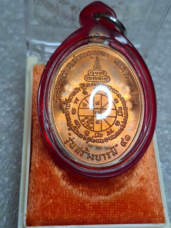 เหรียญหลวงพ่อคูณ ปริสุทโธ รุ่น สร้างบารมี 91 ออกวัดบ้านไร่ ปี 57 เนื้อ ทองแดงผิวไฟ 5 โค๊ด no.873