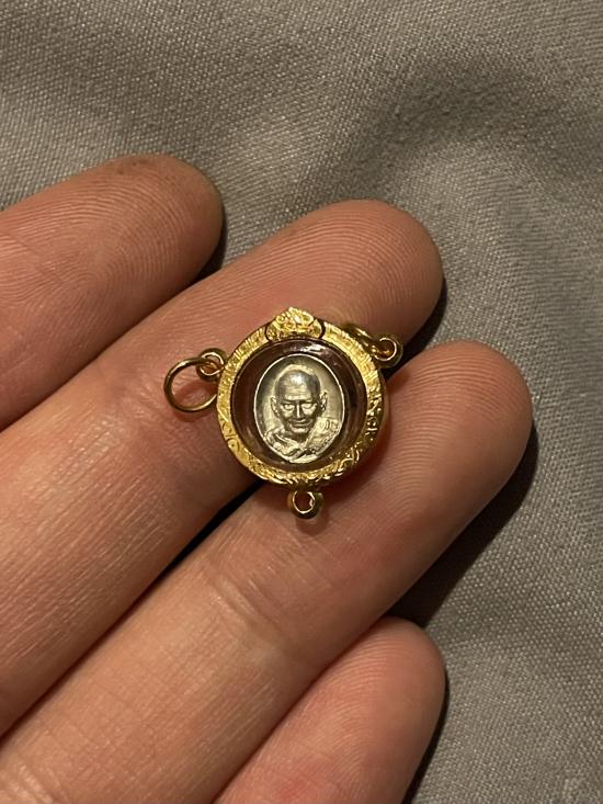เหรียญเม็ดยา"เลื่อนยศ)หลวงปู่มหาศิลา สิริจันโท วัดโพธิ์ศรีสะอาด ปี 2564 เนื้อเงิน กรอบทองคำแท้ 3 ห่วง พร้อมกล่องเดิม ๆ จ.กาฬสินธุ์