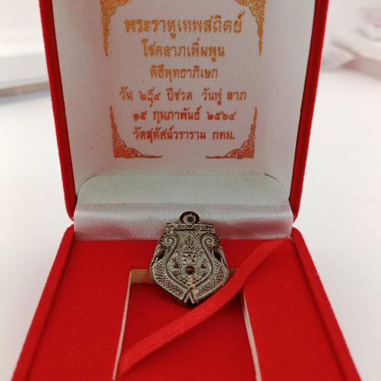 พระราหูเทพย์สถิตย์ รุ่นโชคลาภเพิ่มพูน เนื้อกะลาแกะ พ.ศ. 2564 วัด / กรุ วัดสุทัศนเทพวรารามราชวรมหาวิหาร จังหวัด กรุงเทพมหานคร |