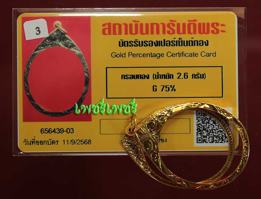 กรอบทองคำ เปอร์เซ็นต์สูง75% หนัก2.6กรัม ขนาดหน้าจอกว้าง2.7สูง3.2 เซ็นต์ ด้านข้างหรือความหนา กว้างถึงรอบพับ 0.5เซ็นต์ สภาพสวยสมบูรณ์ พร้อมบัตรรับรองจากการันตีพระสบายใจได้ ค่ะ
