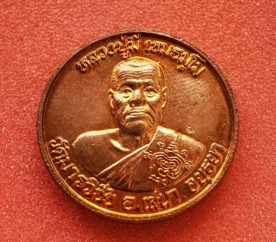 เหรียญพระครูเกษมคณาภิบาล(มี เขมธมฺโม)วัดมารวิชัย ต.บางนมโค อ.เสนา จ.อยุธยา เหรียญโภคทรัพย์ มหาเศรษฐี ปลุกเสกไตรมาส เนื้อทองแดงขอบสตางค์ ตอกโค๊ต ปี2540#2 |