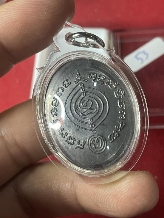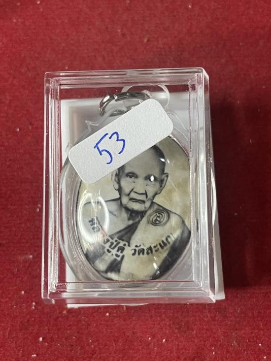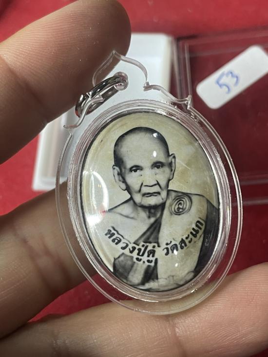 หลวงปู่ดู่ วัดสะแก ฉากขาว ซีเปีย พิมพ์รูปไข่ หลังยันต์ เนื้อตะกั่ว ปี 53 |