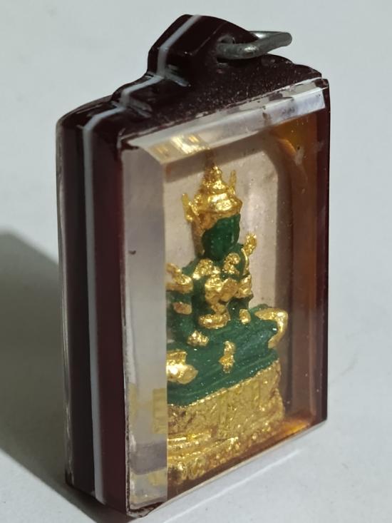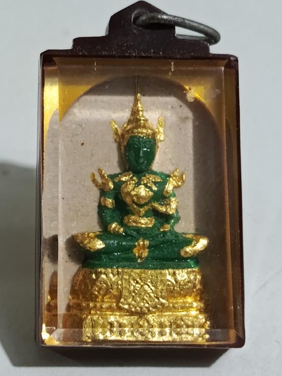 พระผง พระแก้วลงสีพิมพ์ใหญ่ หลวงพ่อทองอยู่ วัดใหม่หนองพะองปี 18 เนื้อผงน้ำมันหลังเรียบ เลี่ยมเก่าวินเทจ |
