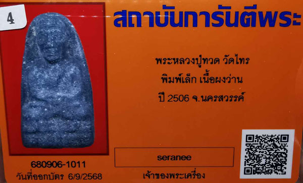 พระหลวงปู่ทวด วัดไทร พิมพ์เล็ก เนื้อผงว่าน ปี2506 จ.นครสวรรค์ + บัตรG-pra สภาพเดิมค่ะ