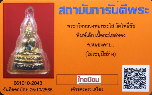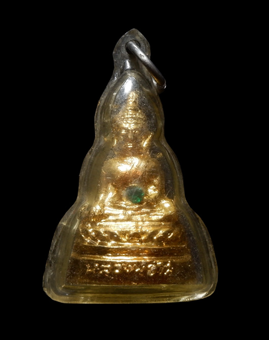 พระกริ่งหลวงพ่อพระใส รุ่น3 ปี 2520 พลอยเขียว เลี่ยมเดิม เนื้อทองเหลือง กะไหล่ทอง วัดโพธิ์ชัย จ.หนองคาย + บัตรรับรอง G-Pra
