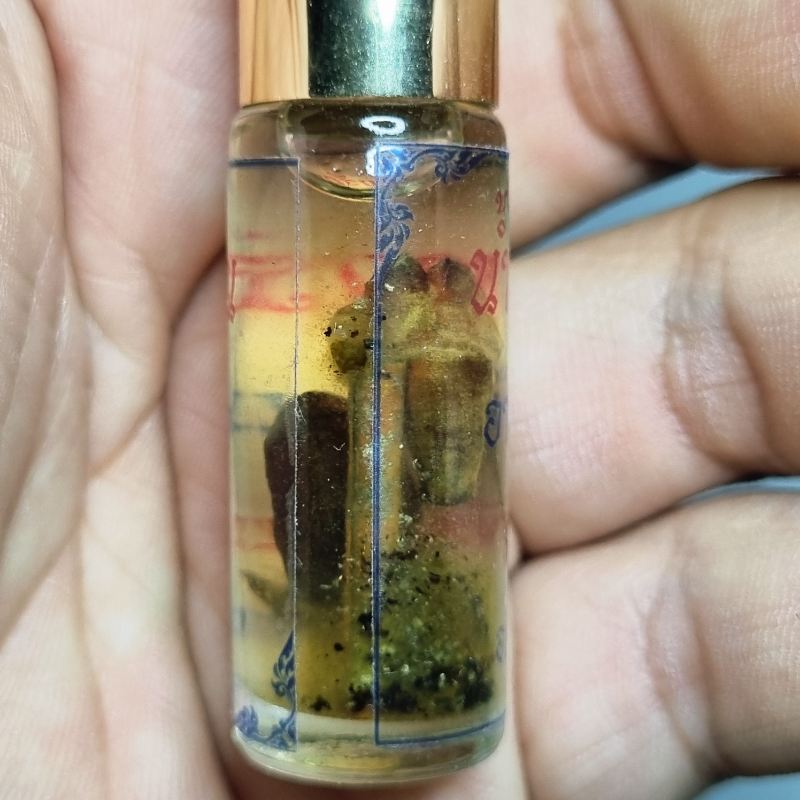 (ยุคแรก มีสติ๊กเกอร์ ถูกๆ) น้ำมันเทพรัญจวน อ.อุ้ย เก้ายอด สำนักสักยันต์เก้ายอด จ.อุบลฯ (หลวงปู่สวัสดิ์ วัดป่าแสนอุดม ปลุกเสก) ขวดใหญ่ สร้างปี 2556-2557 |