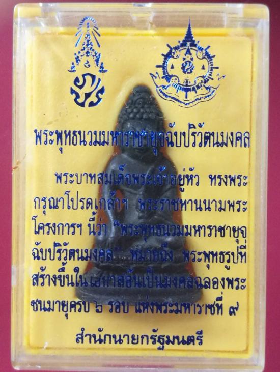 พระกริ่ง ภปร.ครบ ๖ รอบ ๗๒ พรรษา ร.๙ (พระพุทธนวมมหาราชายุจฉับปริวัฒนมงคล) สำนักนายกรัฐมนตรีจัดสร้าง ปี ๒๕๔๒ พร้อมกล่อง |