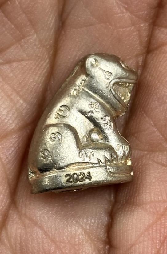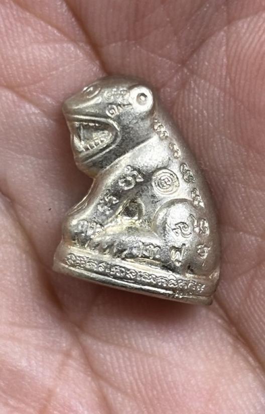 เสือปั้มรุ่นแรกหลวงพ่อฟู อติภัทโท (พระมงคลสุทธิคุณ) วัดบางสมัคร อ.บางปะกง จ.ฉะเชิงเทรา รุ่นอำนาจดี บารมีฟู ปี พ.ศ.2553 พิมพ์เล็กเนื้ออัลปาก้า ฐานอุดผงมงคล พร้อมกล่องเดิมๆ หมายเลข 2024 โดยความกว้างฐาน 1.2 ซ.ม. ความสูง 1.5 ซ.ม.