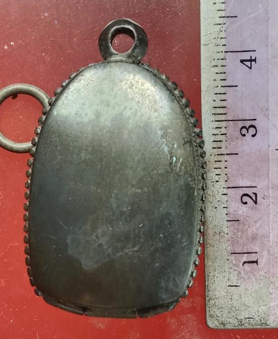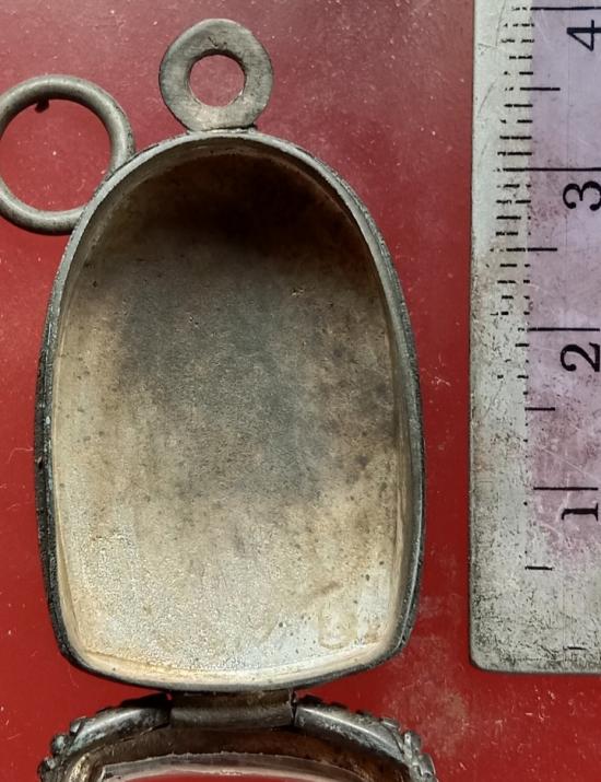 ตลับเงินเก่าไม่ทราบเปอร์เซ็นต์เงินปิดหลังข้างไข่ปลาใส่พระคงเนื้อดินมาตรฐาน |