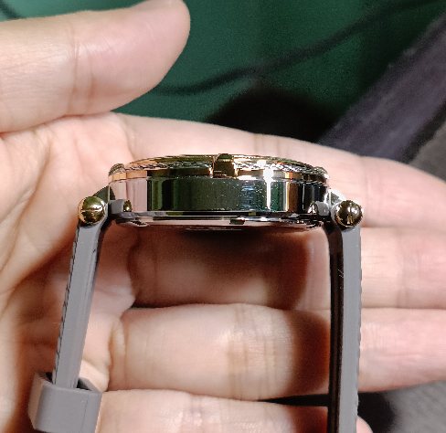 เป็นนาฬิกาสำหรับคุณสุภาพสตรี ขนาดตัวเรือน38 มิลไม่รวมมะยม เป็นตัวเรือนสองกษัตริย์ เงินและสีพิงค์ หน้าปัดมุก สีเหลือบสวยงามเปลี่ยนแปลงตามมุมแสงตกกระทบ ขอบหน้าตัวเรือนล้อมรอบด้วยสายสลิงเกลียว ดูหรูหรา มีระดับ มีมะยมสปริงชนิดเกลียวล็อก และปุ่มกด2 ปุ่ม บน ล่าง มาพร้อมสายซิลิโคนสีเทาแกมม่วงนิดๆ สวมใส่นุ่มสบาย ยืดหยุ่นตามข้อมือ
