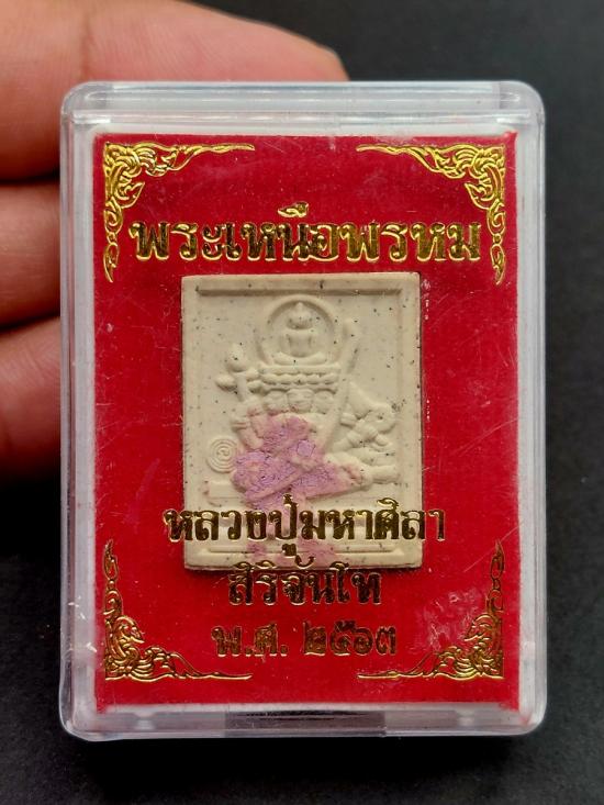 พระเหนือพรหม ยุคต้น ปี63 หลวงปู่มหาศิลา หลวงปู่ศิลา สิริจันโท วัดโพธิ์ศรีสะอาด สวนสงฆ์แกเปะ เนื้อผงพุทธคุณ ยันต์กลับ เลข 1856 เจิมในพิธี มีกล่องเดิม |