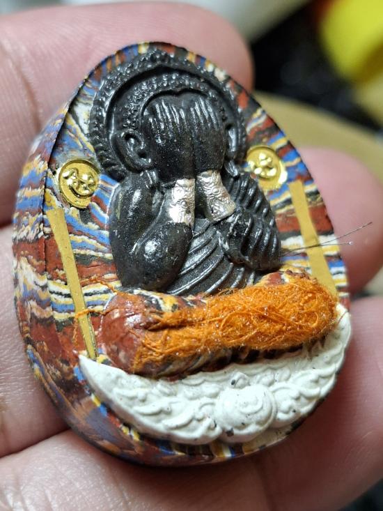 รายการที่2 องค์ครูฝังชิ้นส่วนสมเด็จวัดระฆังกำไลเงินคู่ติดเกศาจีวรหลวงปู่ เลขสวย 13 จัดสร้าง 599 องค์