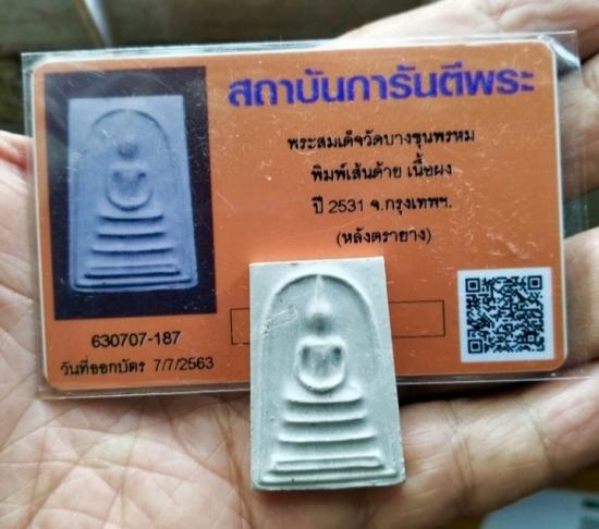 สมเด็จวัดบางขุนพรหม พิมพ์เส้นด้าย เนื้อผง หลังตรายาง ปี 2531